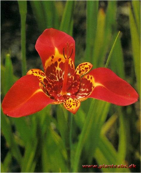 Tigerblomst er en knoldplante med farvestålende blomster. Hver blomst holder kun en enkelt dag, men der er flere blomster på hver stilk, og de springer ud efterhånden.